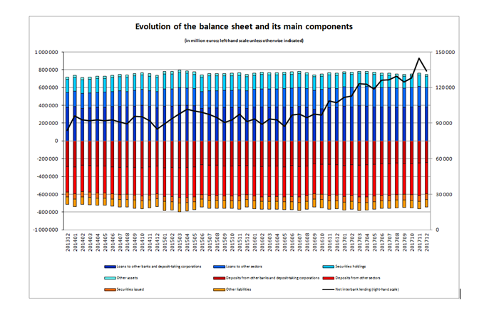 Net interbank lending, that is to say the difference between interbank loans and deposits, reached 134 111 million euros at the end of December 2017.